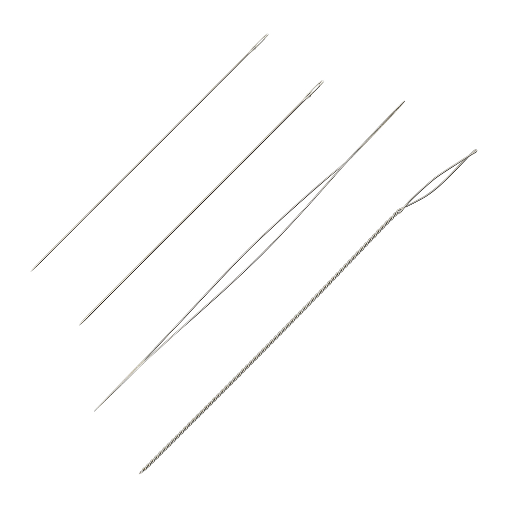 Beading Needle Variety Pack, Hard Needles #10 /0.46 mm, 50.8 mm / 2 in, and #12 0.42 mm, 50.8 mm / 2 in, Big Eye 57.15 mm / 2.25 in, Collapsible Eye 63.5 mm / 2.5 in, 4 pc