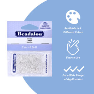Use a little or a lot of this jewelry chain to add appeal and create drama in beaded designs. Short lengths of chain lend a sparkling touch: add a hanging chain tassel from your beaded designs for a signature look. Use long lengths of Chain with the clasp of your choice to create bracelets and necklaces with beaded accents.