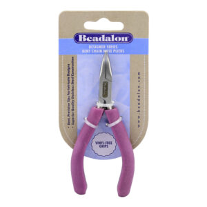 Designer Series Bent Chain Nose Pliers, Purple Vinyl-Free Grips, Stainless Steel, Box Joint, Double Leaf Springs, 4.75 in / 12 cm