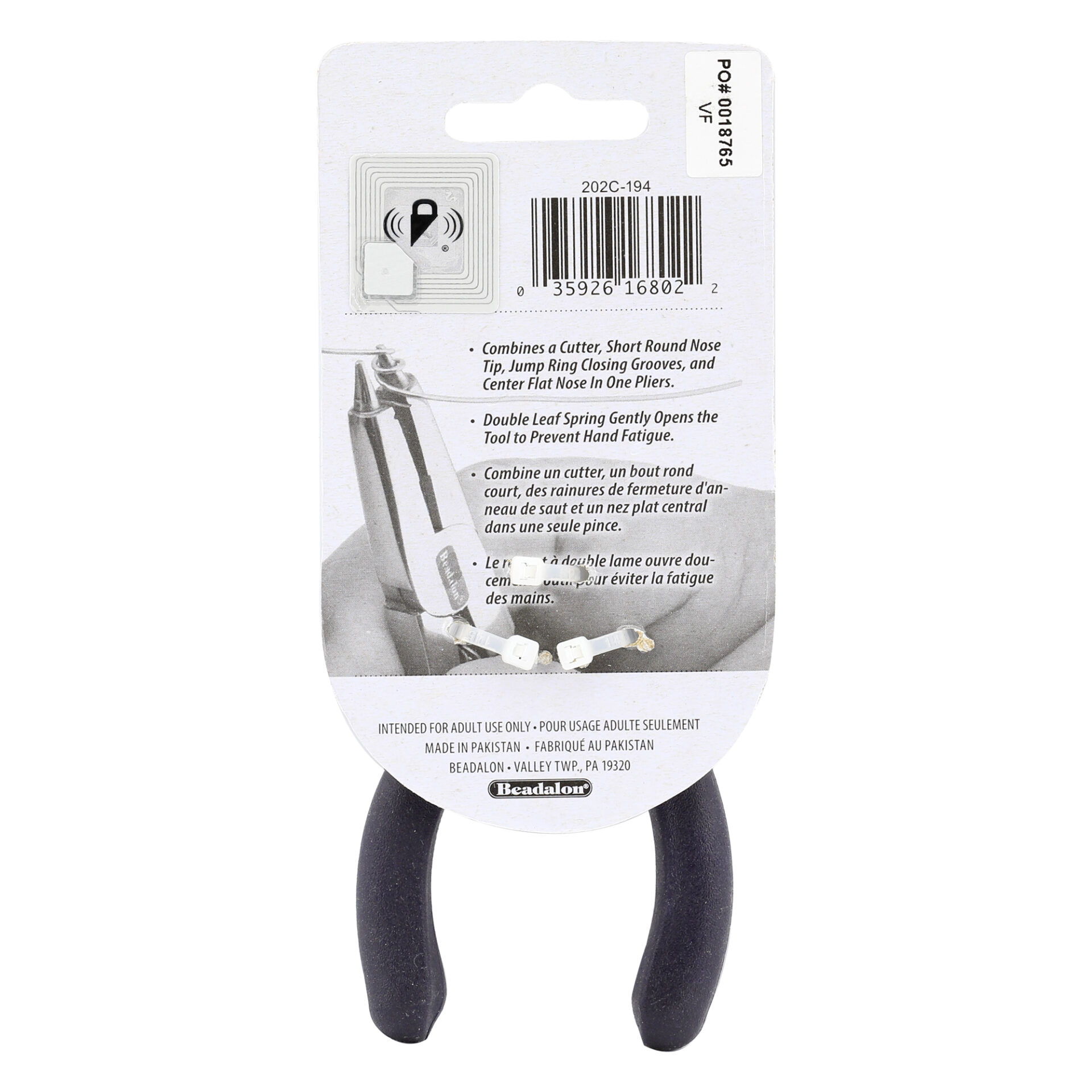Designer Series Combo Pliers 4-in-1, Dark Blue Vinyl-Free Grips, Box Joint, Cutter, Short Round Nose Tip, Jump Ring Closing Grooves, Center Flat Nose, 4.75 in / 12 cm