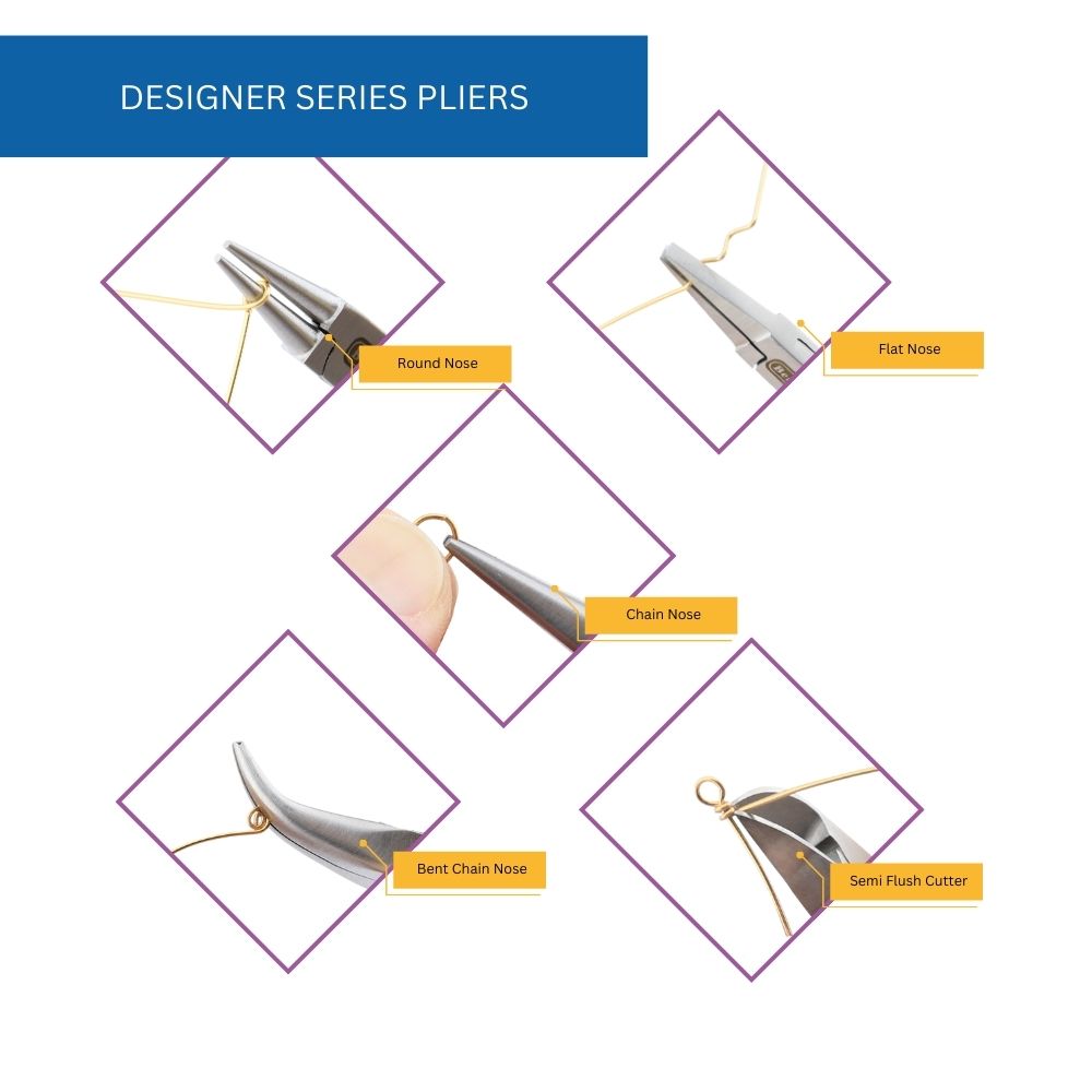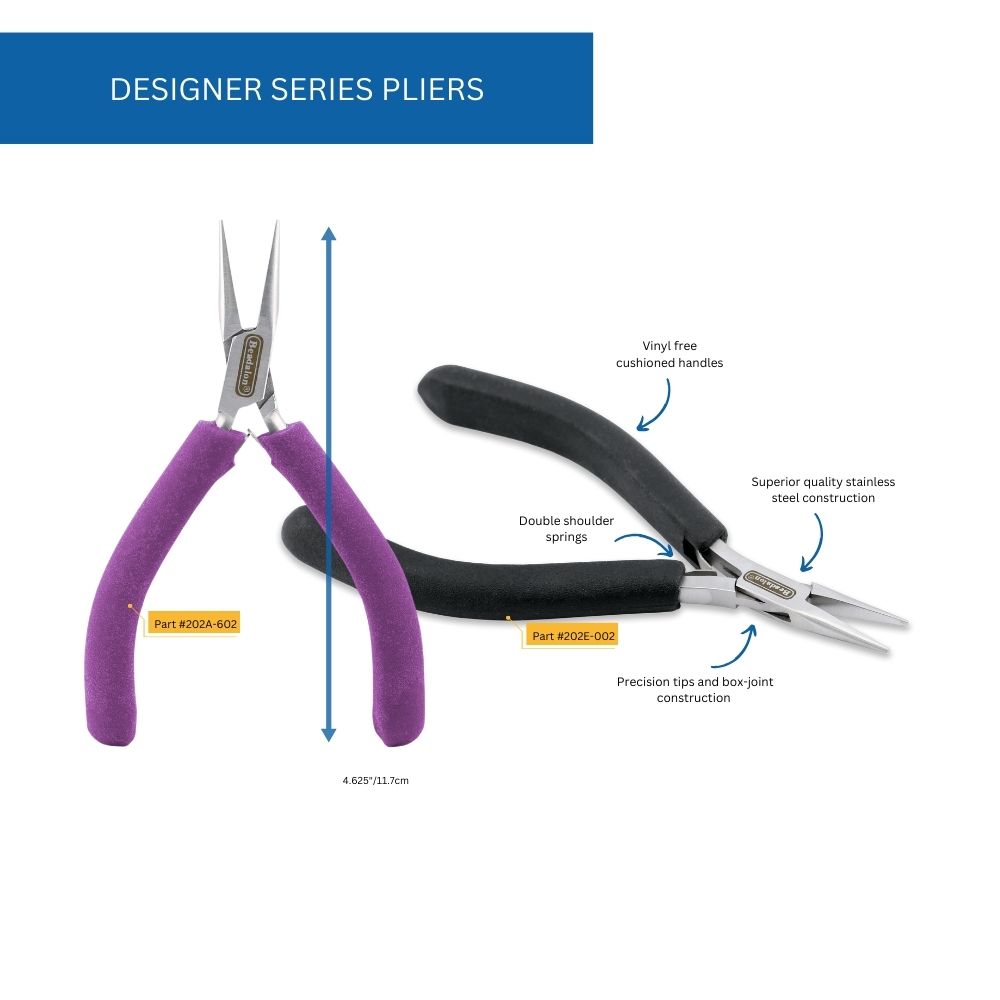 Designer Series Pliers Kit, Purple Vinyl-Free Grips, Chain Nose, Bent Chain Nose, Round Nose, Semi-Flush Cutter, 4.75 in / 12 cm each, 4 pc with Zip Pouch