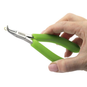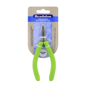 Designer Series Slim Bent Chain Nose Pliers, Lime Green Vinyl-Free Grips, Stainless Steel, Box Joint, Double Leaf Springs, 5.75 in / 14.6 cm