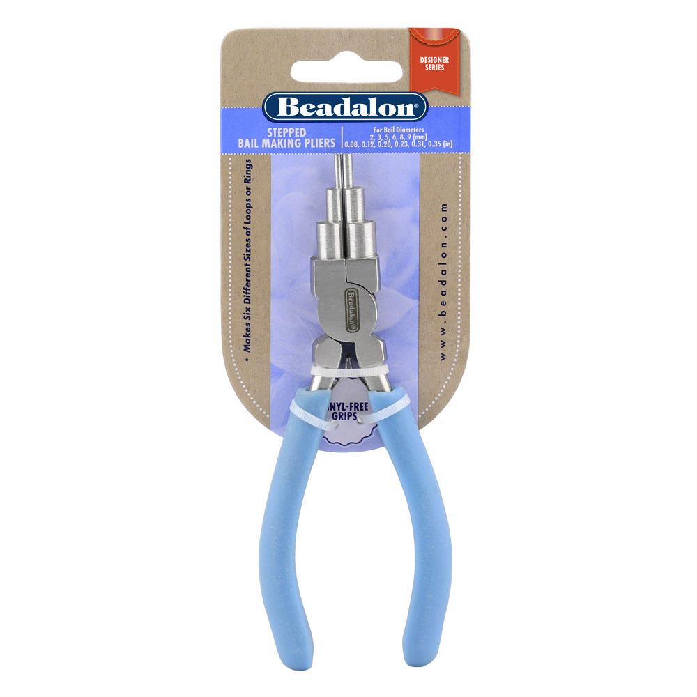 Designer Series Stepped Bail-Making Pliers, Pacific Blue Vinyl-Free Grips, Stainless, Dbl Leaf Sprg, 6 Loop 9,8,6,5,3,2 mm / 0.35,0.31,0.23,0.20,0.12,0.08 in, 6.25 in/15.9 cm