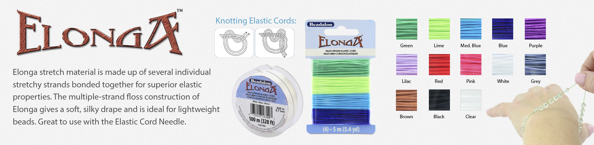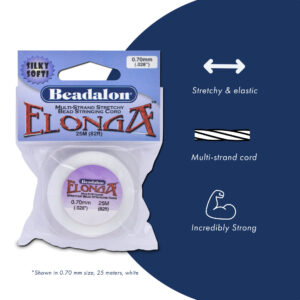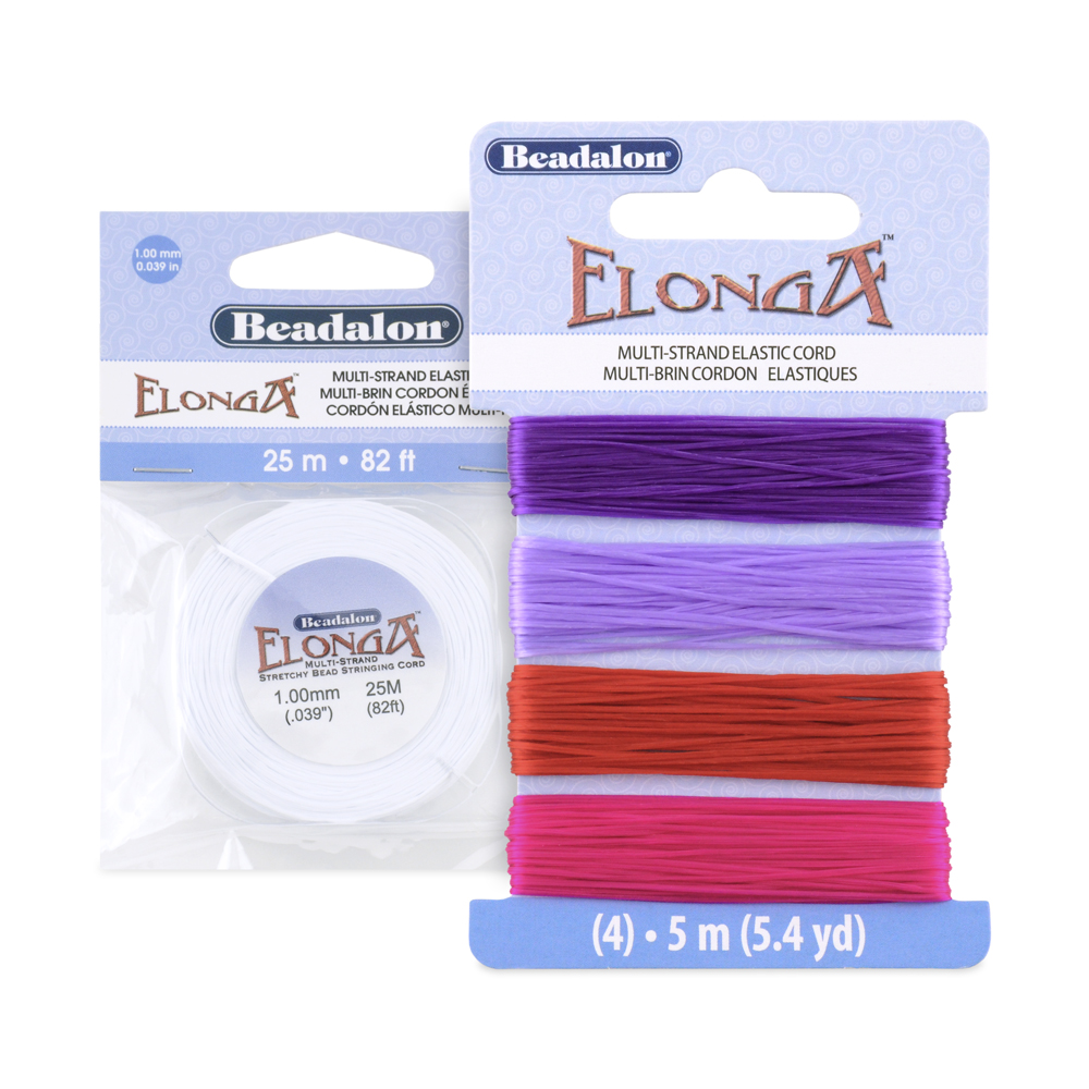 This unique elastic beading cord is made up of several individual stretchy strands bonded together for superior elastic properties. The multiple-strand construction of Elonga gives a soft, silky drape and is ideal for lightweight beads.