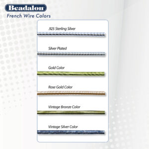 French Wire, also known as ‘Gimp’ and ‘Bullion’ is used to cover and protect bead cord from friction and breakage at the clasp area. By covering the ends of the bead cord, Bullion Wire fortifies the silk beading cord and also gives the design a professional finish.