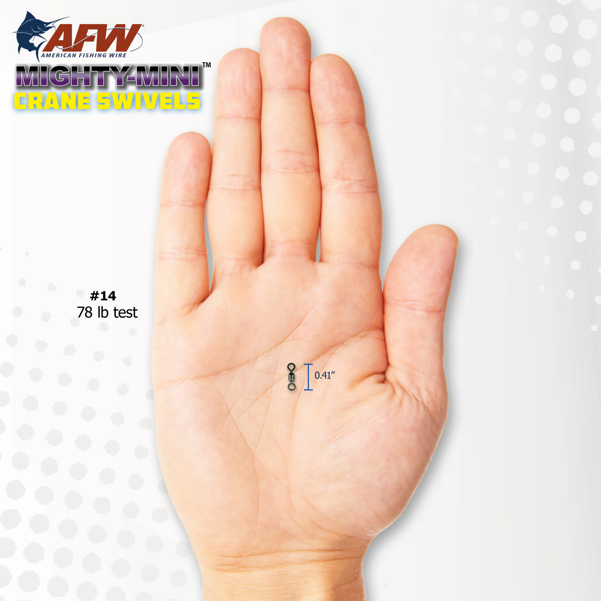 Mighty-Mini Crane Swivels are 100% stainless steel and are 3 times stronger than conventional components of the same size. Smart anglers know that terminal tackle can spook wary game fish. The Might Mini line of compact, 100% stainless steel swivels was engineered to be smaller and stronger than the leading brands of swivels on the market. Now you can use swivels for your rigs, and snap swivels for attaching lures, that are less visible and significantly more powerful.