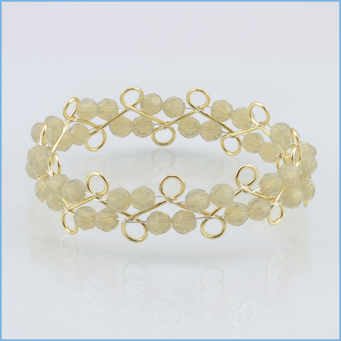The Award Winning 3D Bracelet Jig can make deceptively simple and exquisitely elegant designs. 228S-550, 3D Bracelet Jig, with 20 Pegs 22 mm (0.86 in) L x 4mm (.15 in) O.D. and Holder tubes AWD-20S-03-06YD, Artistic Wire, 20 Gauge (.81 mm), Silver Plated, Gold Color, 6 yd (5.5 m) AWD-22S-10-08YD, Artistic Wire, 22 Gauge (.64mm), Silver Plated, Tarnish Resistant Silver, 8 yd (7.3m)