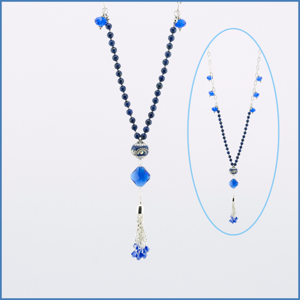 Knotter Tool Blue Tassel Necklace